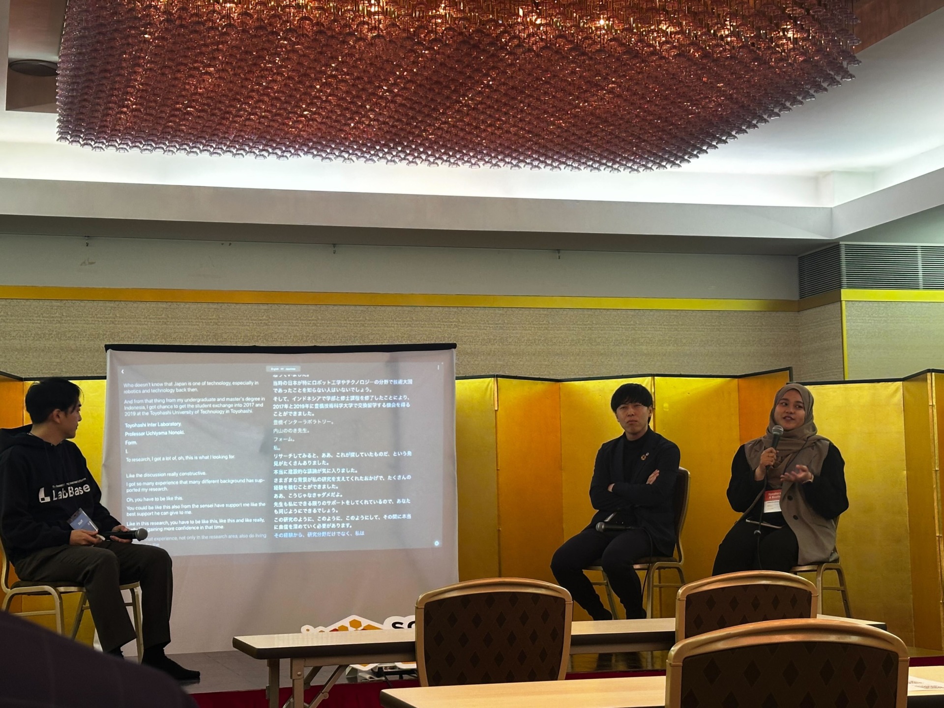 SYADZA氏が実体験として語ったのは、研究活動と並行して日本語を学ぶことの難しさ、そして日本特有の就職活動文化への適応の難しさでした。