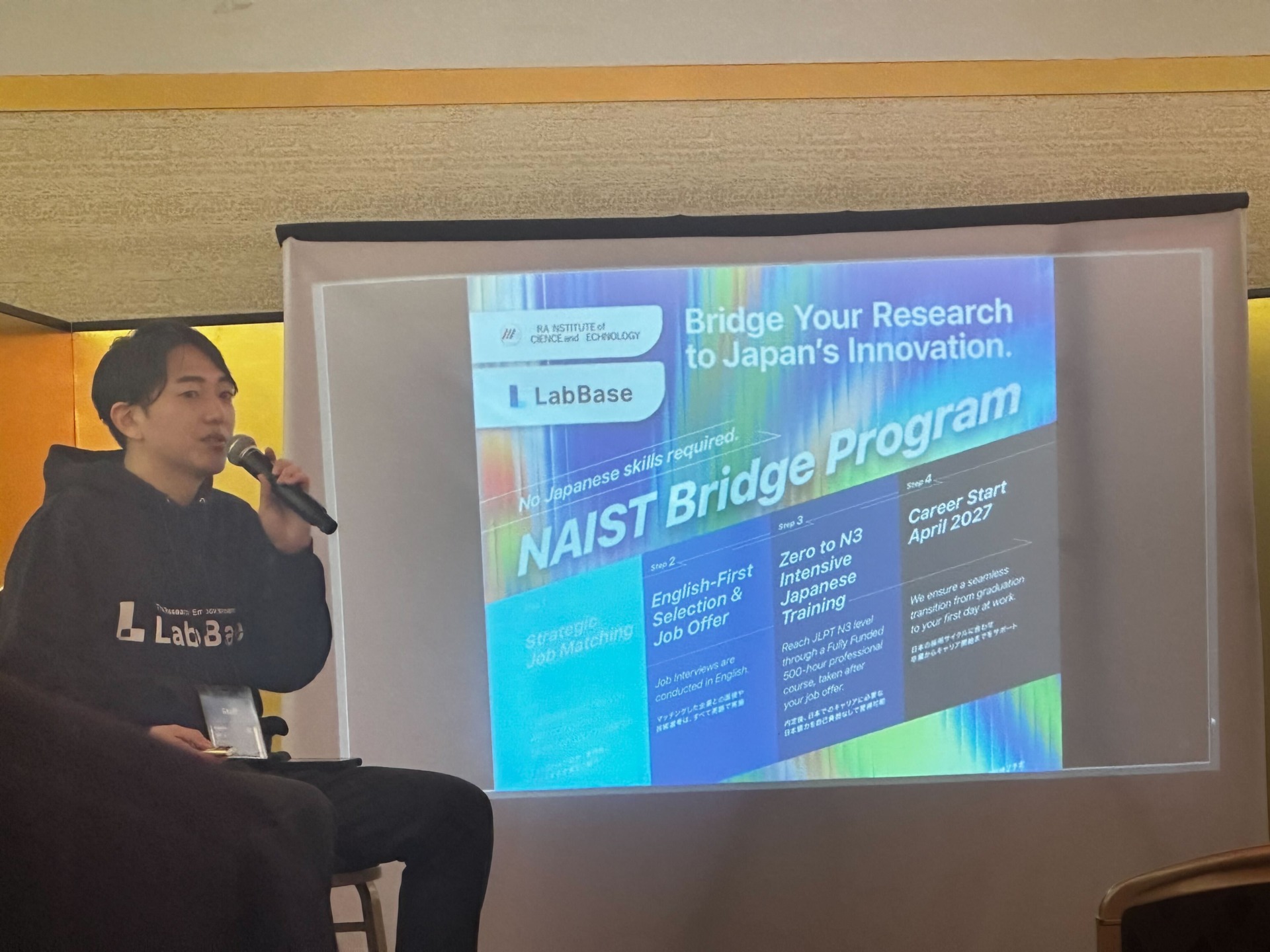 セッションの最後には、LabBaseとNAISTが連携して2026年より始める予定の新しいプログラム「NAIST Bridge Program」についても紹介がありました。