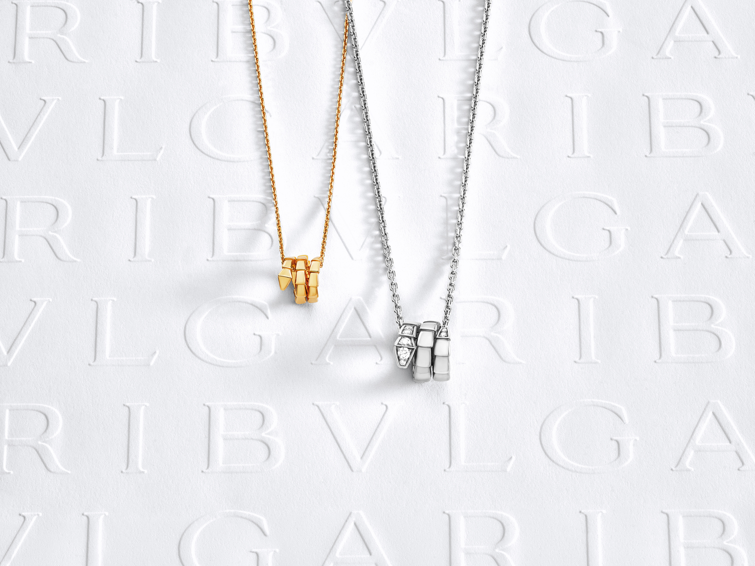 コレクションには、イエローゴールドとホワイトゴールドのアイテムがそろいます。イエローゴールドは温かみのある輝きが特徴で、ミニチュアの蛇をあしらったペンダントネックレスや、力強さとエレガンスを併せ持つネックレスがラインアップされています。